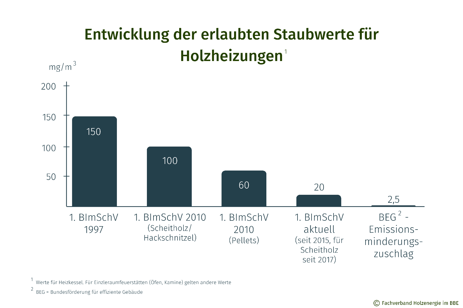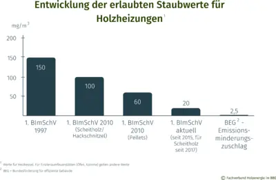Entwicklung der erlaubten Staubwerte für Holzheizungen