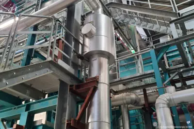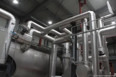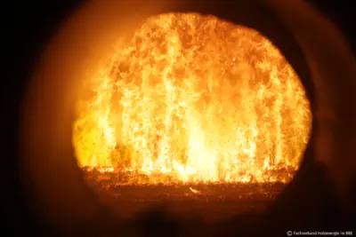 Blick in den Heizkessel eines Biomasseheizkraftwerks