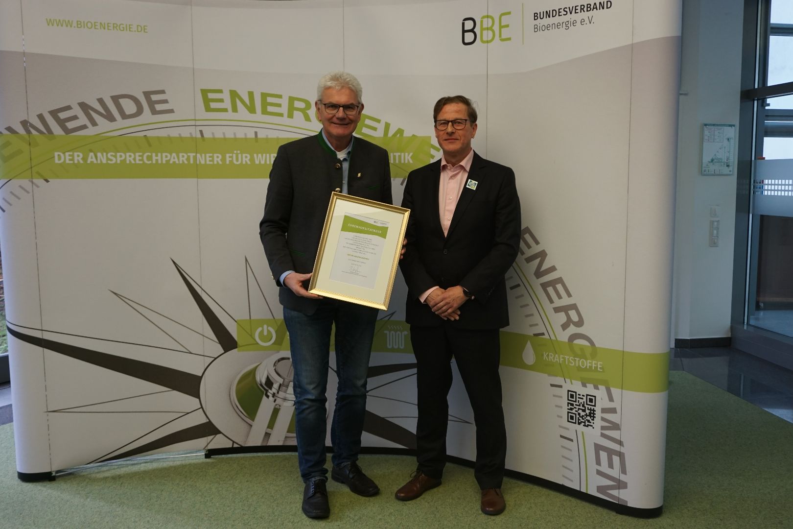 Bernd Heinrich (rechts), stellvertretender Vorsitzender des BBE, ernennt Artur Auernhammer (links) zum Ehrenvorsitzenden des BBE