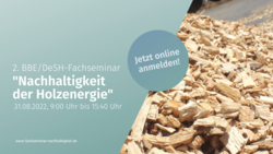 Der Bundesverband Bioenergie e.V. (BBE) veranstaltet gemeinsam mit dem Deutsche Säge- und Holzindustrie Bundesverband e.V. (DeSH) bereits zum zweiten Mal das Fachseminar zur „Nachhaltigkeit der Holzenergie“. In einer Reihe von Vorträgen mit anschließenden Frage-, Antwort- und Diskussionsmöglichkeiten geht es am Mittwoch, den 31. August, von 9:00-15:40 Uhr, um die Umsetzung der Nachhaltigkeitsanforderungen der Erneuerbare Energien Richtlinie (RED II) der EU für Holzenergieanlagen und deren Vorkette. Die Veranstaltung findet im bewährten Onlineformat mit der Software Microsoft Teams Webinar statt. Weitere Informationen dazu erhalten Sie nach Ihrer Anmeldung.