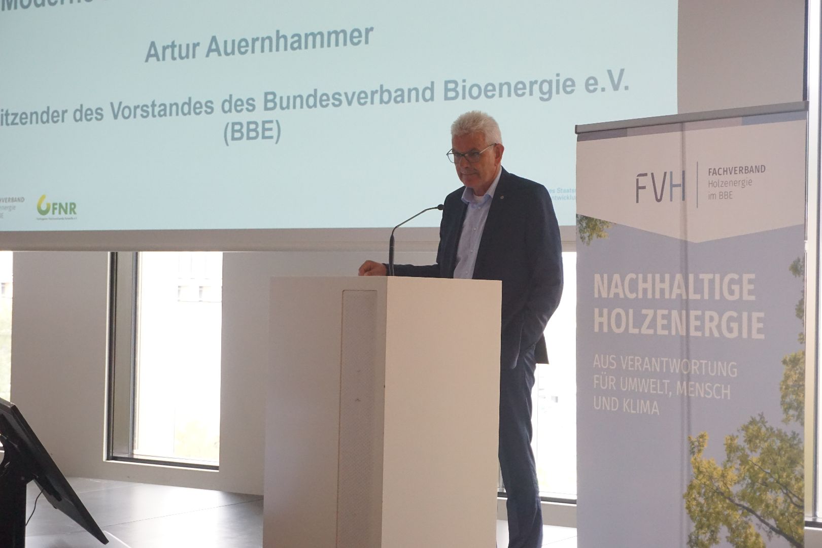 Neben dem Klimanutzen von Holzenergie stellte Auernhammer die zunehmende Belastung der Branche durch Bürokratie und Auflagen heraus. Er verwies auf die kürzlich veröffentlichte Branchenumfrage des FVH, in der über die Hälfte der Befragten Bürokratie und Genehmigungsverfahre als Hemmnisse nannten. „Die Regelungs- und Auflagendichte für die Holzenergie ist bereits hoch und wächst stetig. Bei anstehenden Gesetzesvorhaben muss deshalb Maß und Mitte gehalten werden und eine praxistaugliche und unbürokratische Umsetzung im Vordergrund stehen. Eine wirtschaftlich erfolgreiche Energiewende braucht Unternehmen, Kommunen und Bürger, die Projekte umsetzen und nicht im Papierkram untergehen. Es darf nicht sein, dass wir Klimaschutz und Ausbau der Holzenergie durch übermäßige Bürokratie abwürgen“, so Auernhammer. Als aktuelle Beispiele, bei denen er auf eine unbürokratische Umsetzung pochte, nannte Auernhammer die nationale Umsetzung der Erneuerbare Energien Richtlinie der EU (RED III) und die Überarbeitung der Fernwärmeverordnung.